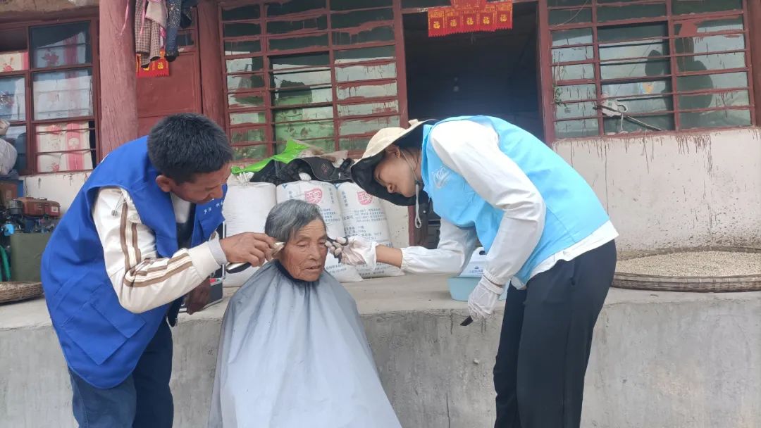 “家里好久没那么热闹喽,我眼神不好,腿脚更不方便,想自己打理下头发和指甲也没法,今天真是辛苦你们了,又给我洗头理发,又给我洗脚剪指甲,真幸福!感谢党和政府对我们的关心照顾。”宜就村的李奶奶说。