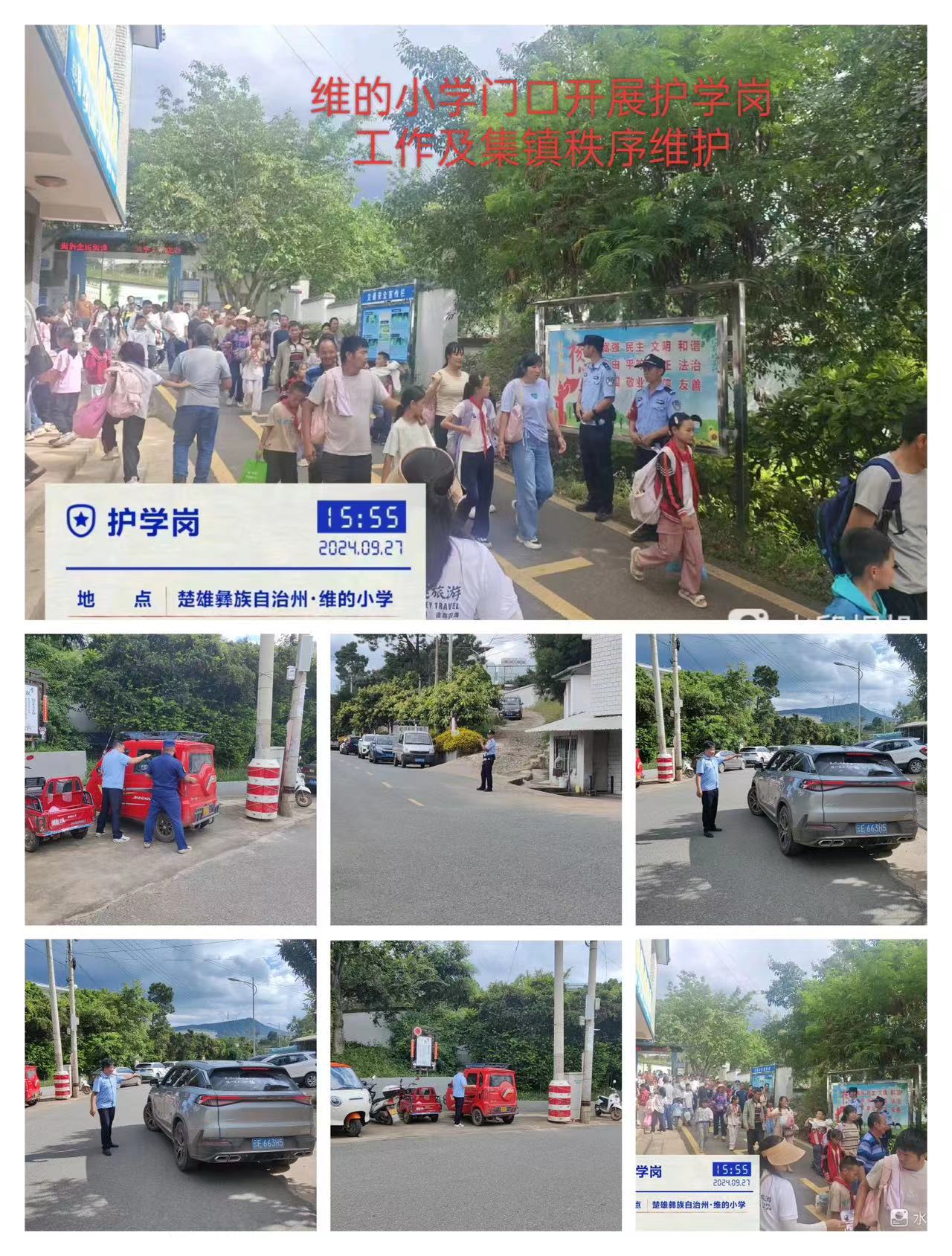 针对学校上下学时段人流量大、车辆拥挤堵塞等问题,维的乡综合行政执法队充分发挥多勤联动机制,按照“定人、定时、定岗、定责”要求,重点加强校园及周边车辆秩序引导,及时疏导车辆和人群,消除道路交通安全隐患,确保学校周边交通秩序井然。同时利用护学岗加强校园、交通等安全宣传,为孩子们撑起一把把“平安伞”。