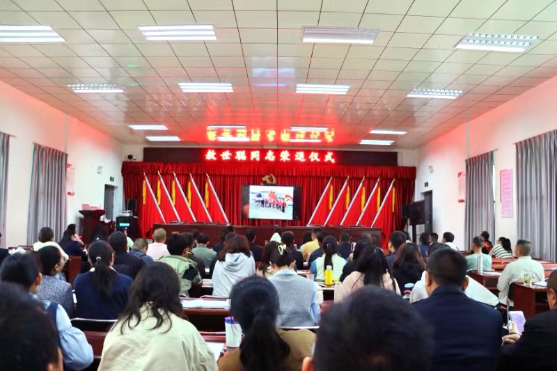 自航主持仪式,全体干部职工、各村书记(主任)参加敖世聪退休仪式。