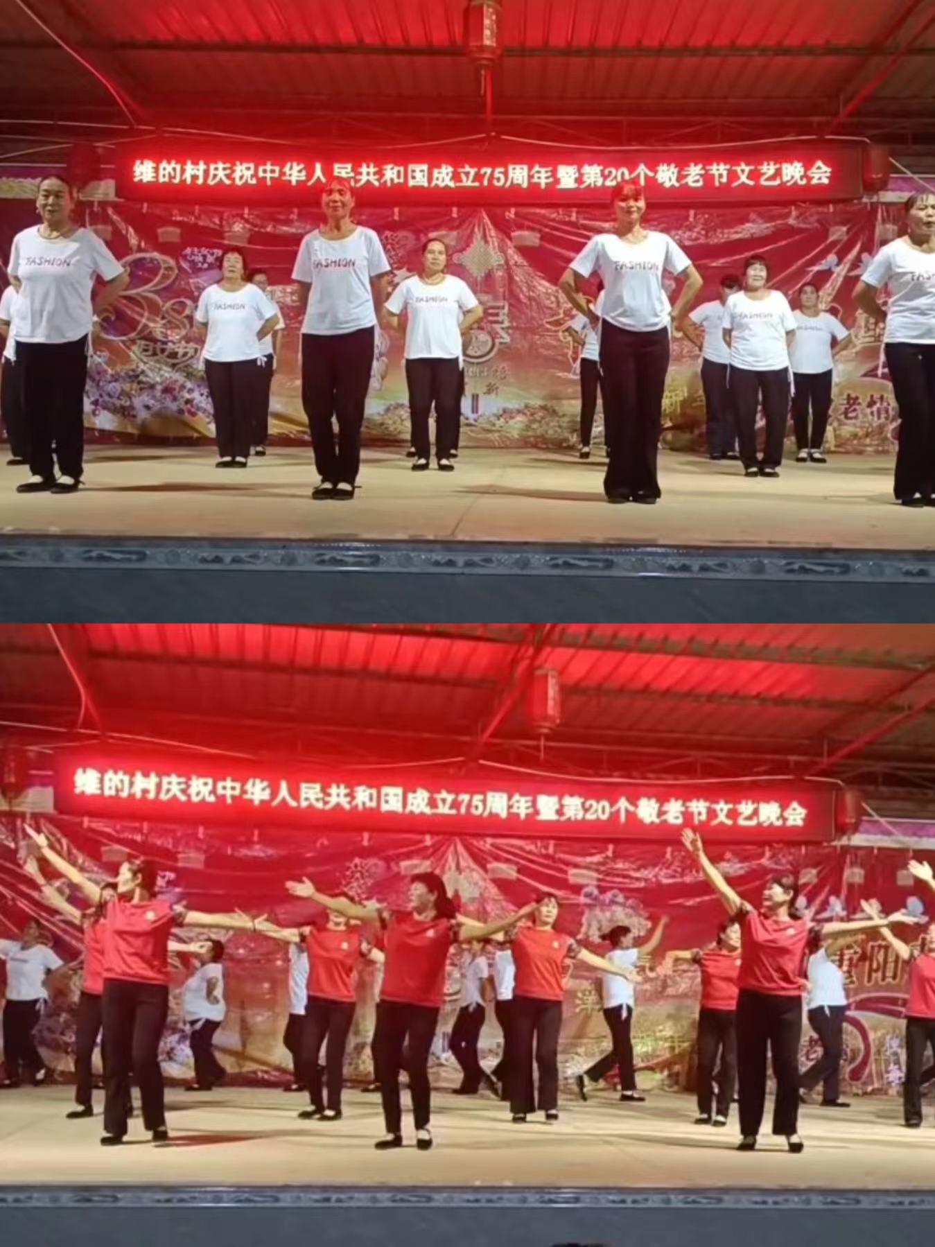 文艺晚会,弘扬美德。重阳节当晚,维的村银发志愿服务队以及维的乡老年大学文艺队继续在维的村组文化活动室开展文艺演出,邀请维的村全体老年人到场观看,大家齐聚在活动室广场上,通过乐器合奏、舞蹈等形式,抒发老同志们赤诚的家国情怀,展现新时代的银龄芳华。