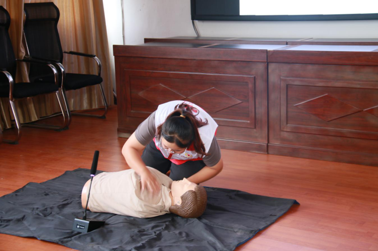 培训班通过“理论+实践”的方式进行现场教学。通过浅显易懂的语言、专业的示范,详细教授了心肺复苏的实操方法以及气道异物梗阻的急救知识。实操环节,授课老师借助人体模型,现场演示CPR的基本操作要领,包括胸外按压、人工呼吸等,给参训人员教授关键时刻的正确施救方法。
