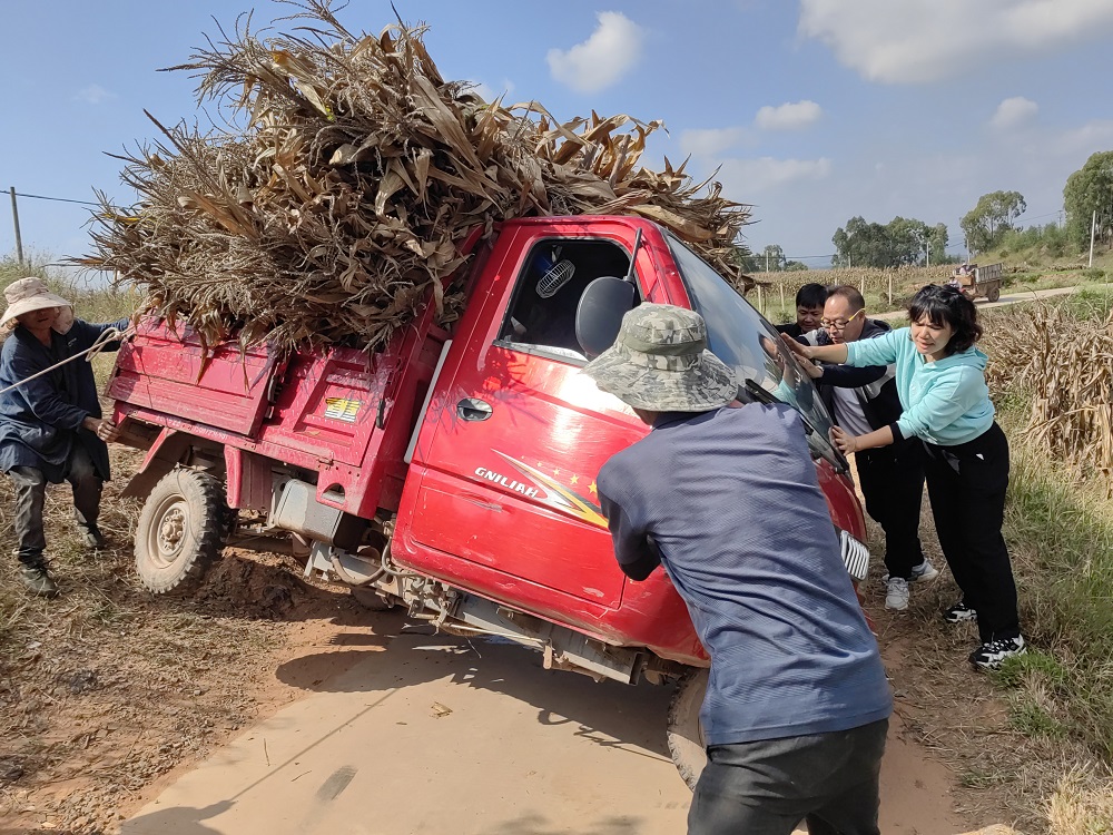 10月30日上午11时3分时许,一辆载满玉米秸秆的三轮车轮子离地侧翻在大保关村下村组路段中央,途经此地的王惠梅、殷顺泽、薛明方立刻将车停在安全位置并上前查看现场情况开展救援。