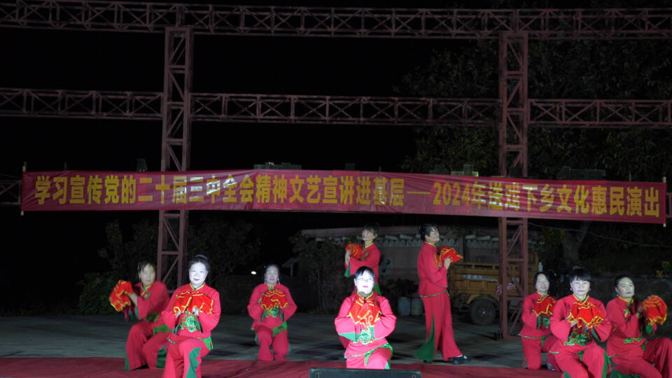 夜幕降临,在方山诸葛营村,音乐声响彻村庄,村民们陆续闻声前来,共同观看演出。一个个节目精彩纷呈,村民们纷纷鼓掌喝彩。快板《学习党的二十届三中全会精神》用生动活泼的方式让党的创新理论飞入寻常百姓家;《羊皮鼓舞》通过具有地方特色的表演形式激发起群众对传统文化的热爱,用群众喜闻乐见的方式传播中国文化,赢得观众的一致好评。