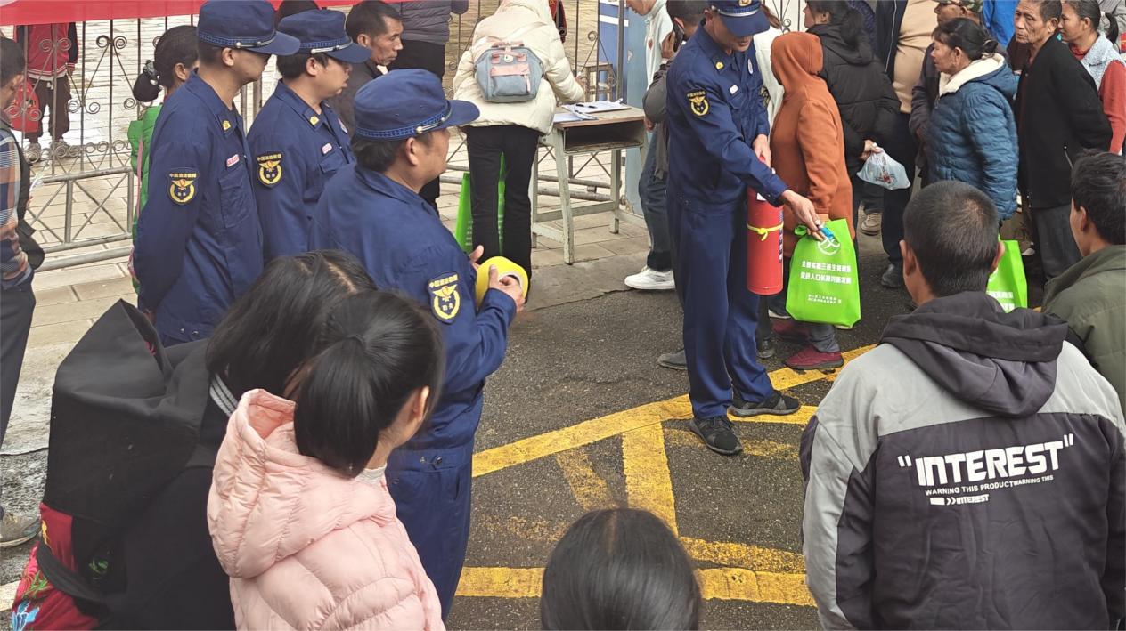 活动现场,乡专职消防队工作人员向群众发放消防安全宣传资料,积极向群众普及家庭常见火灾隐患、如何正确使用灭火器、初期火灾处置措施、火灾逃生自救要领、家庭火灾隐患排查注意事项等消防安全知识。同时,呼吁大家在日常生活中要树立消防安全意识,做到不乱拉电线,不占用、堵塞消防通道,不乱扔烟头,用火不离人等。
