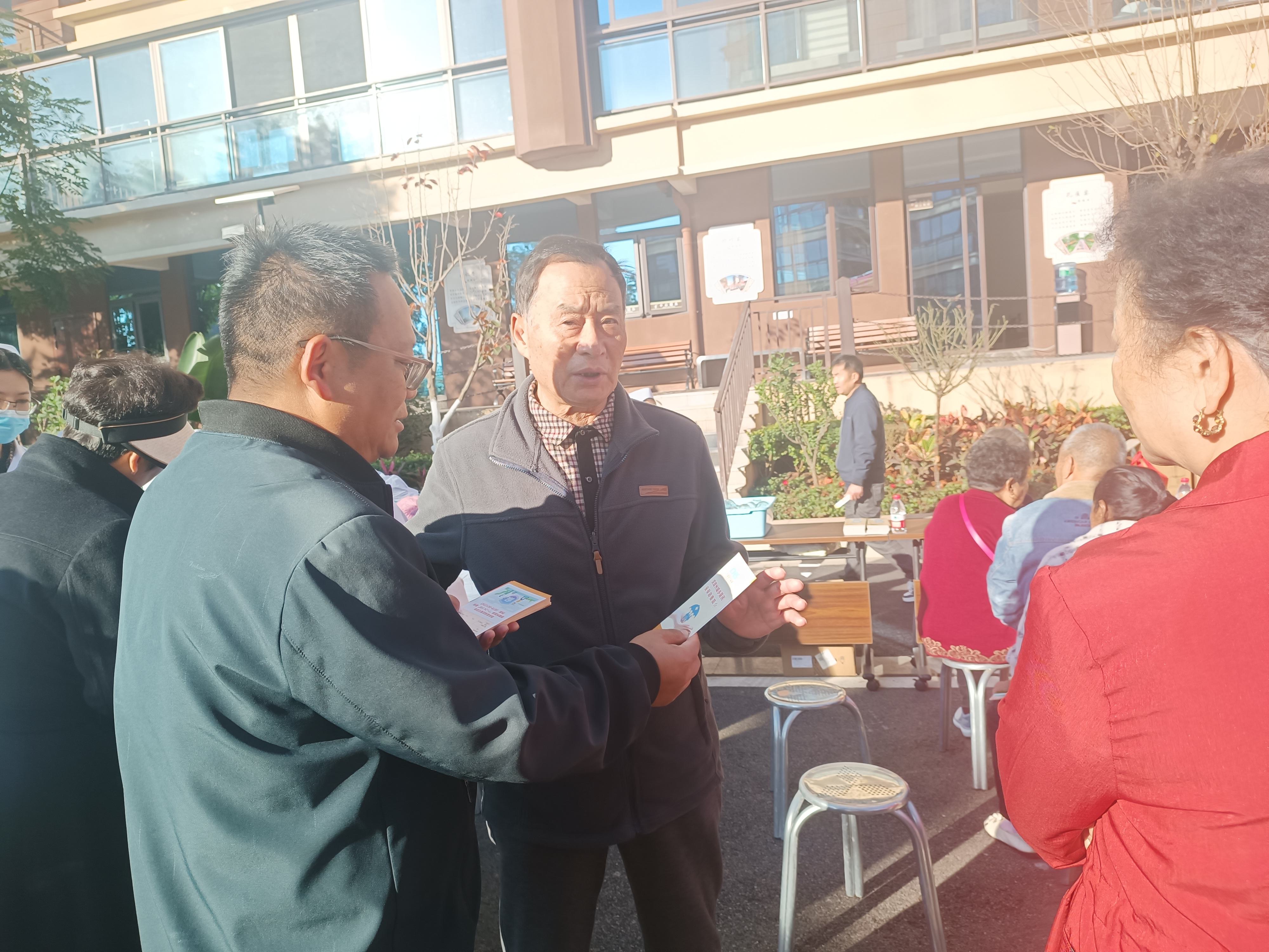 为进一步提高辖区旅居人群对异地参保、异地就医备案政策的知晓率,提升旅居人群就地参保的积极性。11月20日,永定镇在玫瑰阳光城小区组织开展医保政策宣传活动,将医保政策服务点搬到群众“家门口”,将“群众上门”变为“走近家门”。