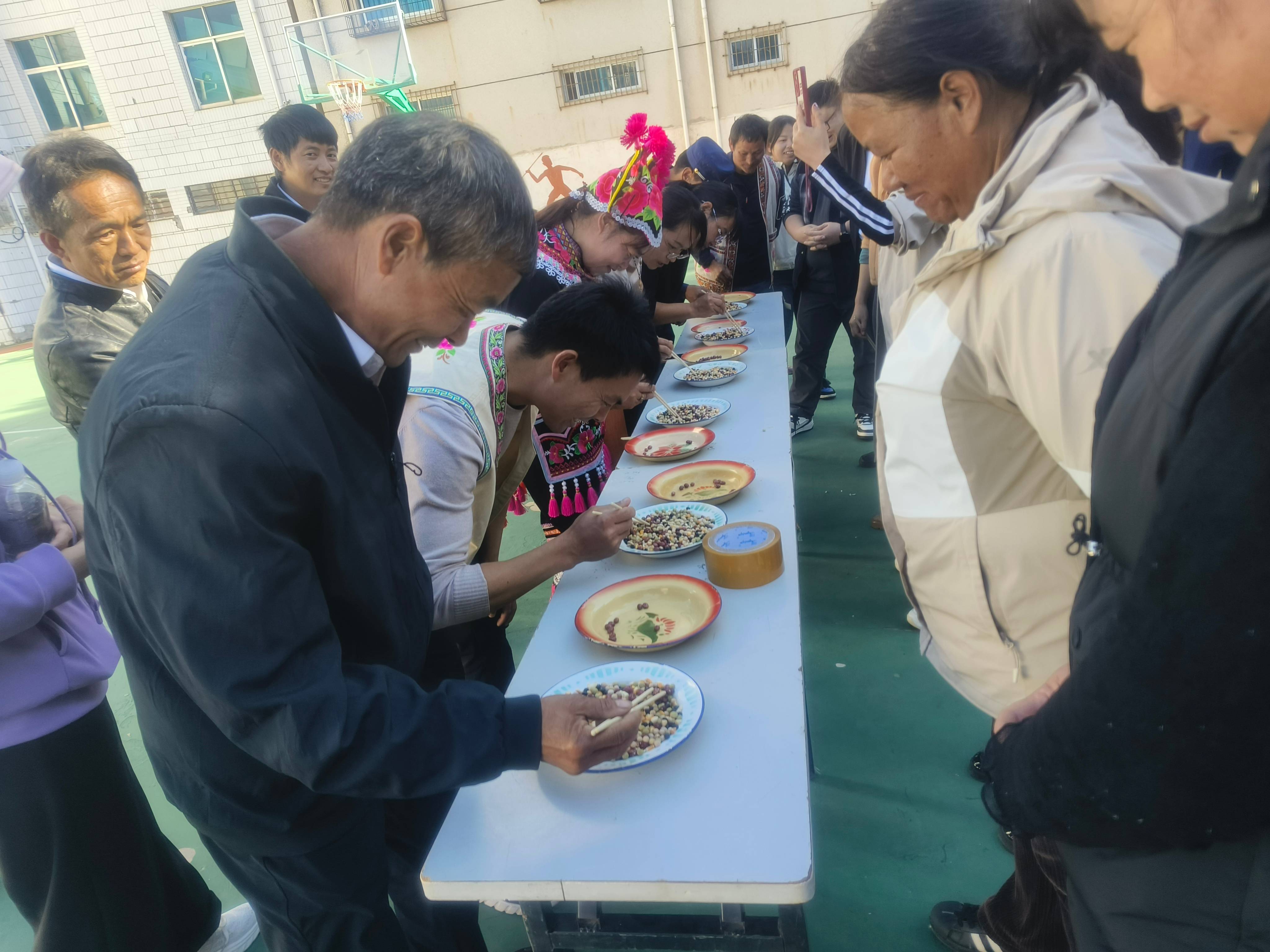 全镇12个村10支队伍参与了拔河比赛,各参赛队友撸起袖子、沉下身子、握紧绳子、团结一心、集中发力,展开了一场团结且激烈的竞赛角逐。在比赛过程中观众们的呐喊声一声比一声高,场地内的队员也受到了激励,展现了团队协作的力量。心灵手巧的群众还参加了捡五谷比赛,通过用筷子在黄豆、黑豆、玉米等五谷中细心捡出红豆,不仅锻炼了身心,还传承了农耕文化。