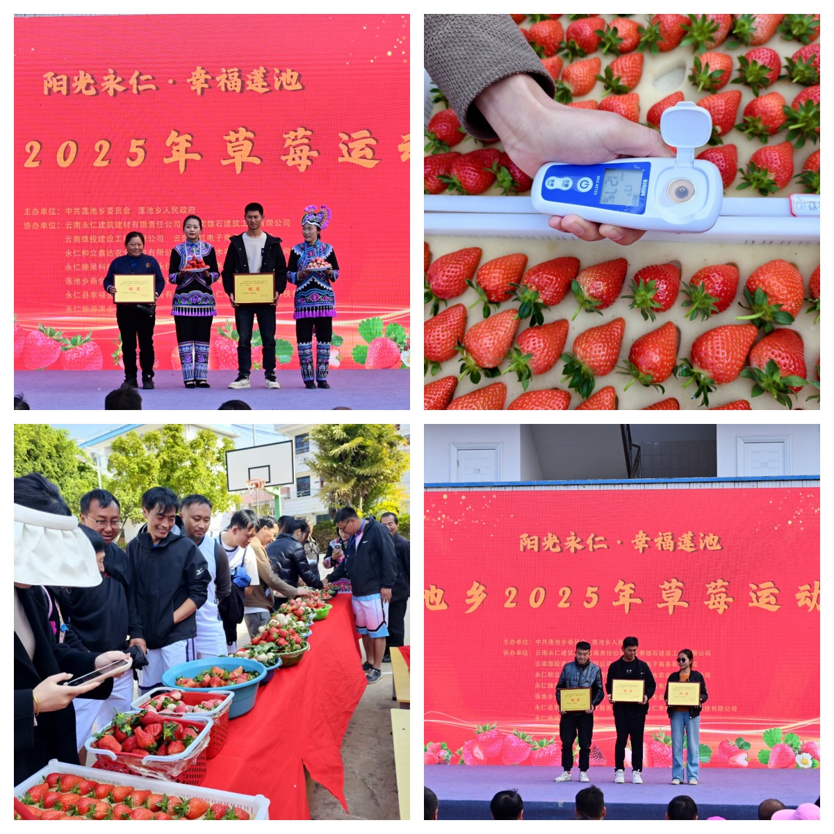 此次活动主题鲜明内容丰富,“村BA ”篮球赛、农民趣味运动会、草莓“金果王”评选、吃草莓比赛、彝绣大赛、“阳光集市”农特产品展销、篝火晚会、“美丽庭院”颁奖等多个精彩环节,全方位展示了莲池乡特色林果产业发展的丰硕成果和干部群众积极向上的精神风貌,吸引了大量县内外游客,为宜居永仁建设做出了莲池实践。