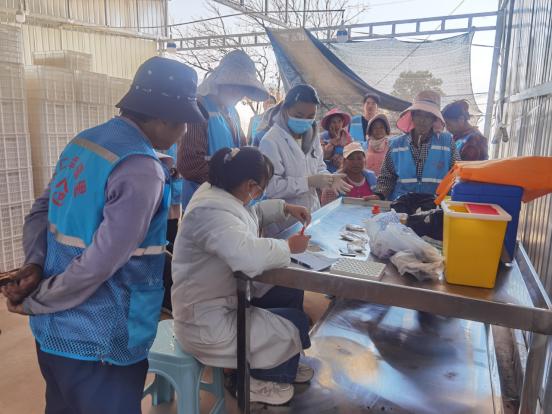 在蓝莓产业园区体检现场,健康服务与产业振兴工作同时开启。当日上午七时,由5名医护人员和10名党员志愿者组成的服务团队早早搭建起临时健康驿站。活动一开始,前来体检的群众便排起了长队。在志愿者的细心引导下,大家有序进行了血压、血糖、血常规等基础检测,并填写了健康档案。医护人员根据群众的疾病史,进一步完善档案信息,为后续慢性病管理和健康服务奠定扎实基础。等候间隙,人社专员还同步开展了务工需求调研,深入了解基地务工人员的需求与现状,同时宣传农民工维权等相关政策。