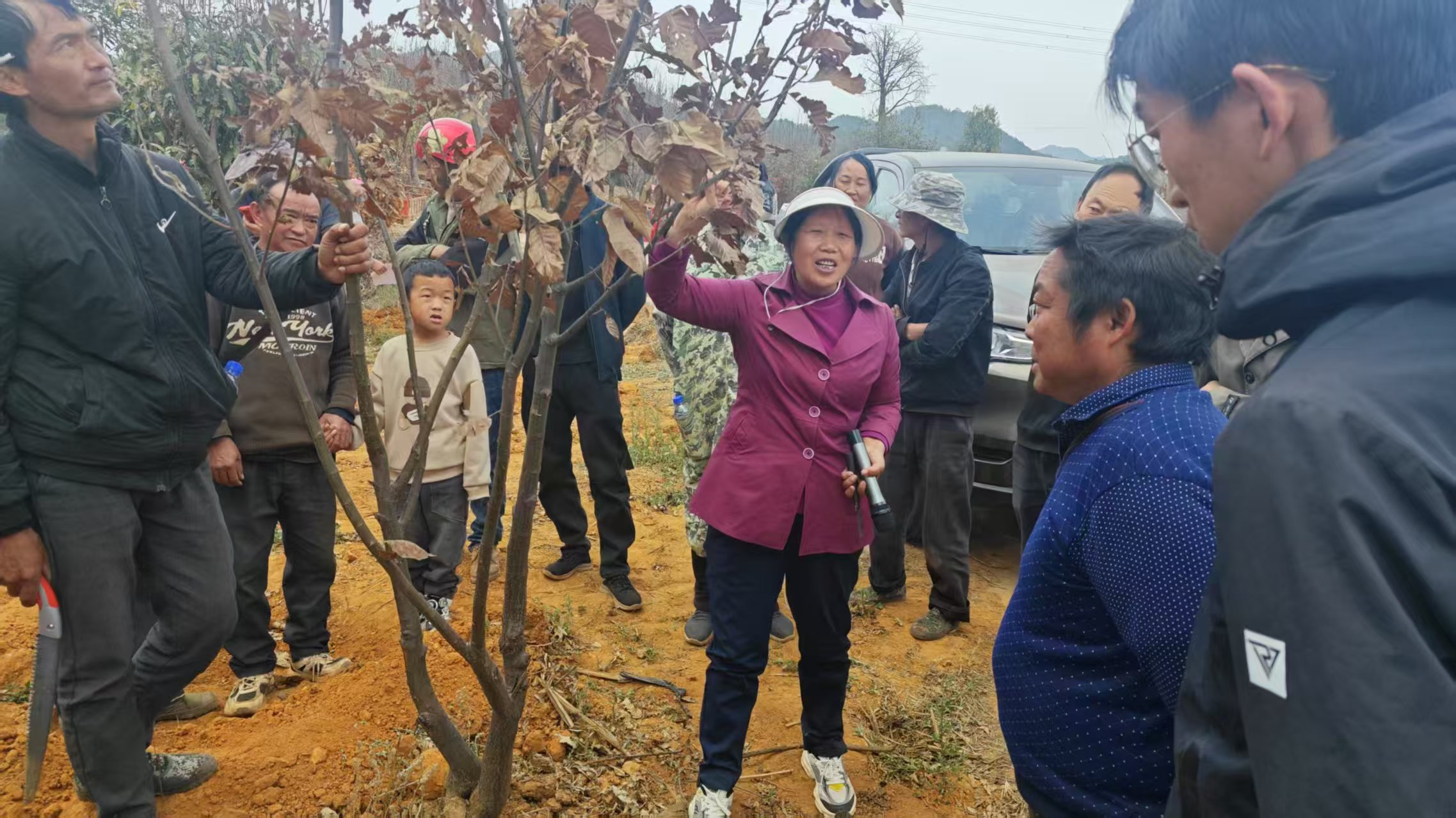 培训采用“技术理论知识讲解+现场实操”相结合的方式进行。培训现场,专家针对不同板栗树龄的情况,与部分群众开展“一对一”教学,用通俗易懂的语言讲解板栗的嫁接、修枝整形技术、病虫害防治、后期养护管理办法,并现场进行示范操作。参加培训的学员针对板栗良种选育、良种认定、嫁接技术、病虫害防治等常见问题进行现场咨询,专家对大家提出的问题一一进行了解答。