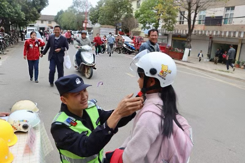 针对家长接送学生“忘戴、懒戴、侥幸不戴”头盔难题,该乡创立“黄红双色预警”人性化管理系统。黄灯警示阶段:首次违规者通过“护学岗民警+情景教育”模式,签订《交通安全承诺书》后免费借用共享头盔。红灯惩戒阶段:二次违规者启动“行政处罚+信用记录”机制,同步纳入家长会、村民小组会重点提醒对象名单。
