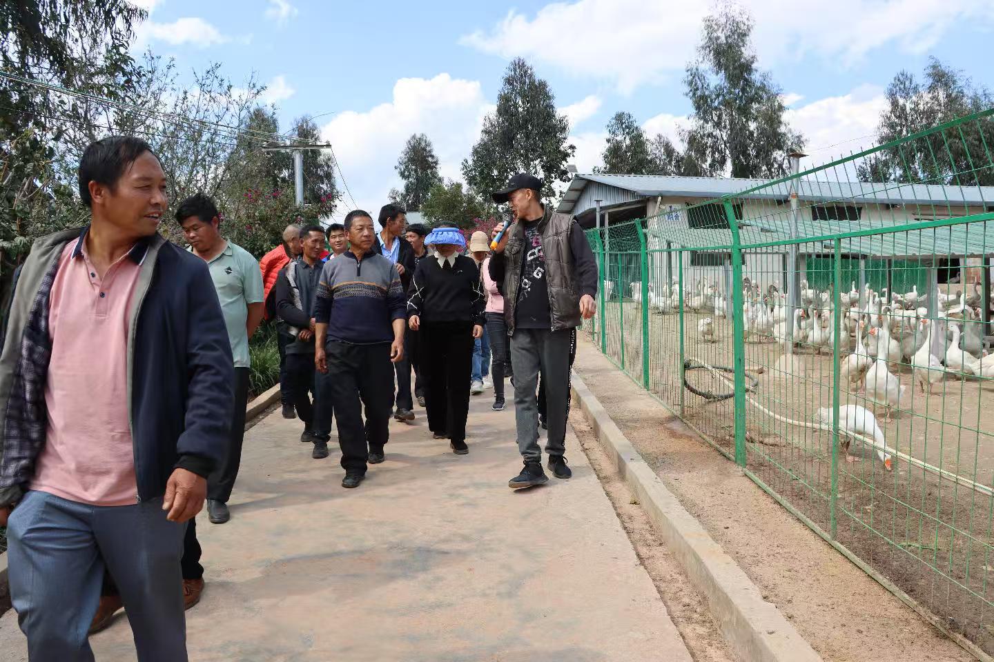一线观摩看特色。在阿里地村饲草种植实验基地,大家详细了解了26个实验饲草品种的种植情况,为种养循环产业夯实基础。走进猛虎村格么梁子精品芒果示范园,参会人员看到赵顺洪193亩的芒果园,即便早已过了芒果的上市旺季,但他园内的凯特芒果依旧沉甸甸地挂在枝头,大家都觉得不可思议。几个小组长纷纷与老赵讨教特晚熟芒果种植管理经验,深入交流特晚熟芒果种植技术,探寻特色林果业发展路径。在永仁创能农业科技开发有限公司种鹅基地,放眼望去,数千只健壮肥硕的鹅聚集成群,叫声此起彼伏,大家认真观摩,并就学习现代化种鹅养殖技术与种鹅基地负责人进行深入交流。在永仁县高原特色现代农业种苗育苗基地(猛虎片区),参会人员认真观摩了优质草莓种苗培育,感受了一把科技赋能农业的生动实践。