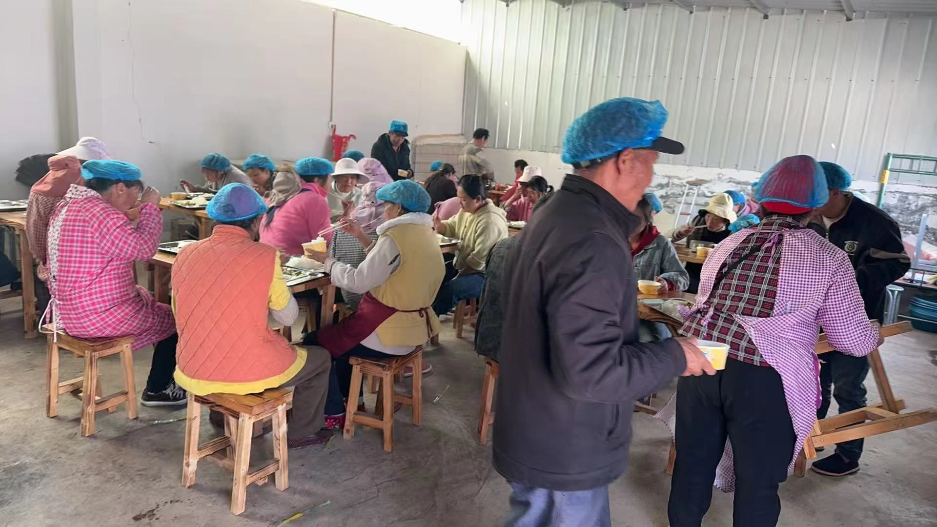 由慕阳投资开发有限公司牵头开展草莓尾果收购、宣传、招工、加工,每日收果约10吨,招工50余人,每天每人收入120元,每日提供一餐(午餐)。在慕阳投资开发有限公司务工的周大姐说:“我们村一共来了6个人,负责分拣、包装,都干了一个月了,每天能拿120元的工资,还包午餐,实现了离家近又有收入啊”。