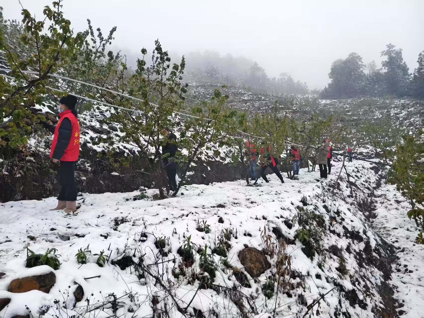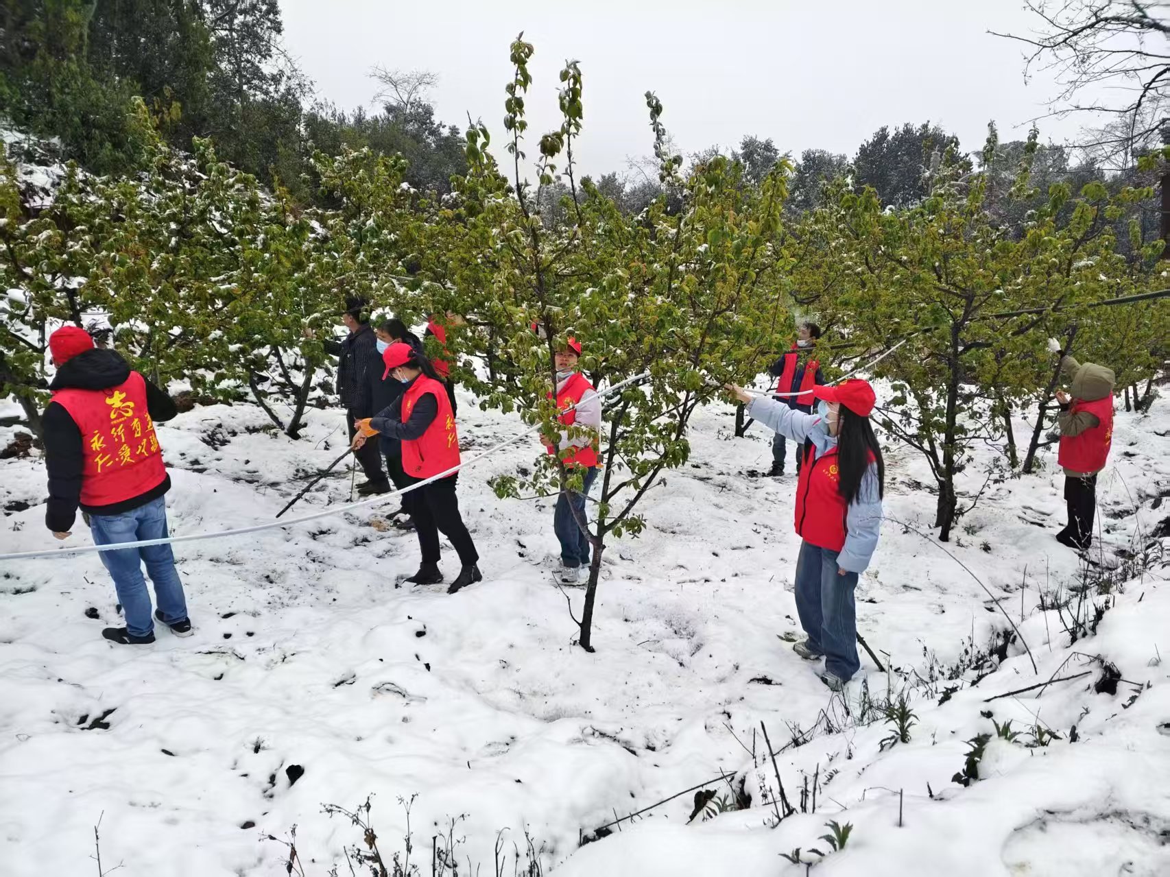 党群齐心 打响护农“攻坚战”3月19日,全乡60名干部职工、40名村干部、党员志愿者组成3支服务队,由乡党政主要领导带队分片包干,深入么吉利村、大保关村等重灾片区。在樱桃园内,干部职工手持竹竿等工具,逐棵轻摇树干清除积雪,人工除冰,对倾斜树木进行支架固定,最大程度降低损失,保障农业生产有序进行。