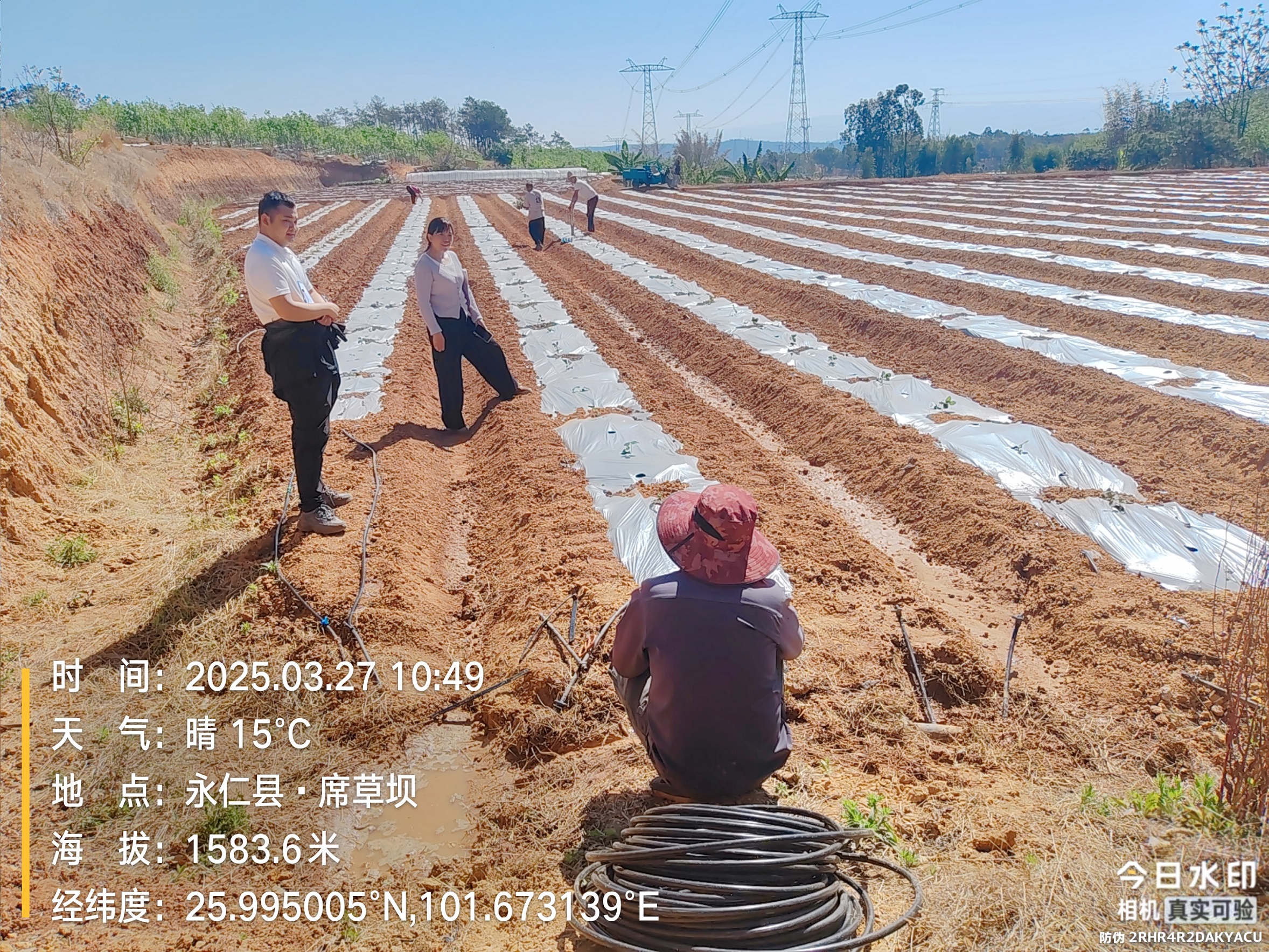 田间地头,新铺设的灌溉管网纵横交错,水流通过计量设施直达农田。莲池乡完成农业水权分配849.38万立方米,安装分户水表1500余户,群众自架管道150公里,实现了农业用水直接引入田间地头,既方便了群众用水,又提高了群众的节水意识,灌区节水效果显著。2025年,重点推进格红、小水井等8条支管及大草坝至班勐片区管网建设,计划铺设主干管22.3千米、田间管网240千米,实现6个村域灌溉全覆盖。目前,永仁县莲池灌区引调水工程(一期)已安装管道22.4公里,节水工程让群众“用水更省心、种田更高效”。