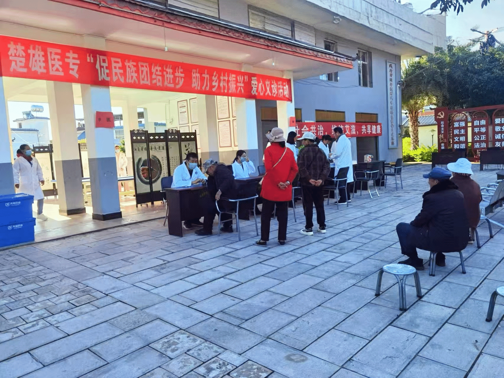 健康帮扶彰显医者担当。2011年以来,楚雄医专长期发挥医疗优势,为猛虎乡提供常态化健康服务。累计组织义诊50余场,惠及群众超5000余人次,指导建成永仁县首个村级中彝医馆。