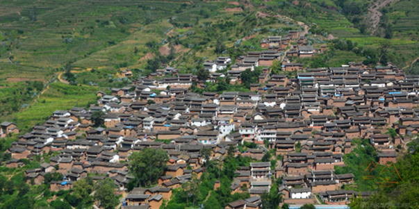 村庄处于火把河和外普拉河倒“八”字中间依山而存,临山望水,村巷走向皆平行或垂直于外普拉河和火把河道,村庄最低处距火把河、外普拉河分别为100米和150米,与河高差均约50米。