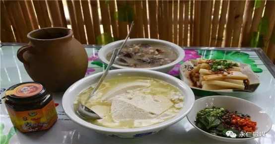 永仁县宜就镇也有几道远近闻名的美食,石磨凉粉、龙泉豆花、全羊汤锅、他克纯粮小灶酒、手工麦芽糖被称为宜就“五绝”,因其独特风味而备受人们喜欢。