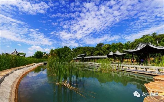 清泉流石,诗情画意,流动的泉水把拦河坝风雨桥、浣衣亭走廊、河道驳岸景观、栈道凉亭等景观串联成一幅飘逸灵动的画卷,令人心旷神怡。