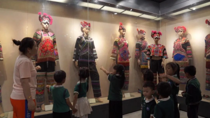 永仁县城东博源幼儿园蒙四班尹鹤洁说:“通走进展厅,菜园子遗址出土的文物前挤满了前来参观的孩子,他们贴着展柜玻璃,仔细观察陶片上的纹路和石斧的形状,在讲解员的解说下,大家了解到这些文物背后的历史,不时发出恍然大悟的感叹。
