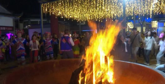 随着热情的篝火在美食文化广场中心熊熊燃起,火把狂欢夜也随之开始,彝家儿女与八方宾朋欢聚一堂,唱左脚调、跳左脚舞,沉醉在火的乐章中,开启一年一度的“玩火”狂欢。烈火在燃烧,火焰在跳动,节日的喜庆萦绕在群众心头。