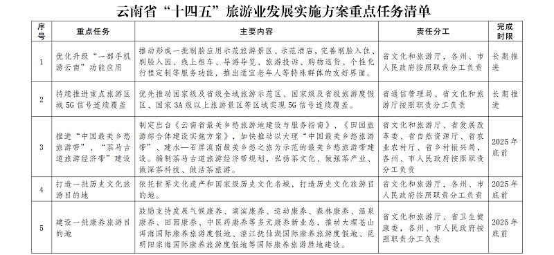 附件:云南省“十四五”旅游业发展实施方案重点任务清单