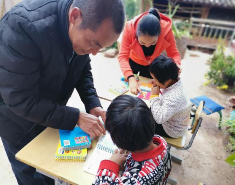 为让残疾孩子也能接受义务教育。近日,莲池完小杨副校长、刘主席、起主任、文主任带领段富芹和杨德坤两位老师,到勐连村委会路保小组王民森家送教上门。