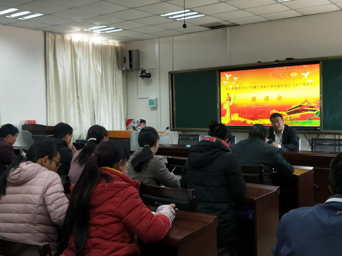 接到楚雄州教育体育局转发云南省教育厅办公室关于组织全体教师观看大型电视纪录片《为了和平》的通知后,学校立即行动,召开全体教师动员大会。学校党支部书记、校长杨韬主持了集中收视启动仪式。