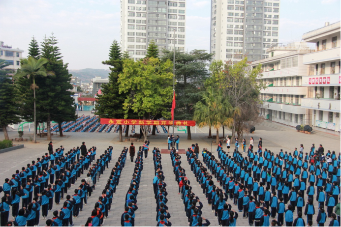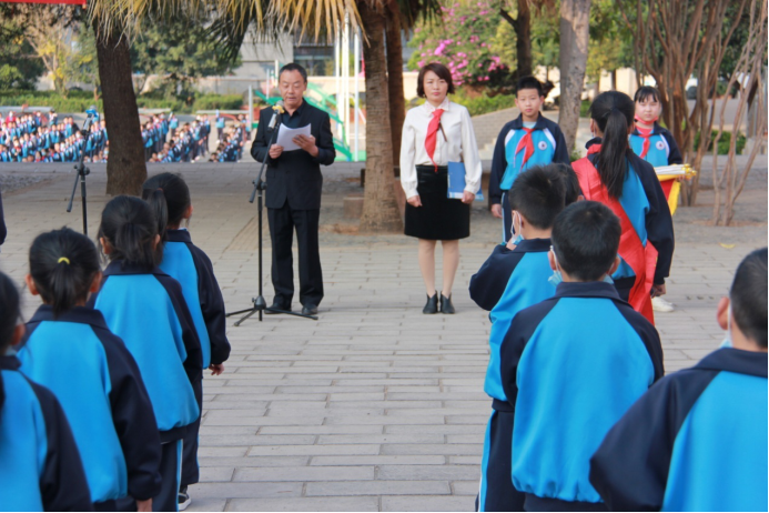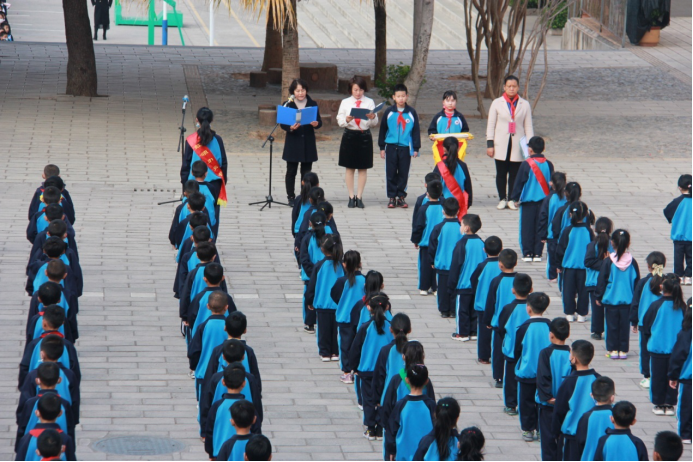 典礼最后,学校领导为上个学期班级管理中取得优异成绩的班级授予了流动红旗,号召全体师生再接再厉,把我校建成家长满意、社会满意的文明学校。