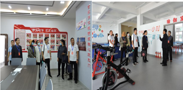 参观教工书屋,与教师交谈;参观心理健康中心,了解学生心理健康教育开展情况。