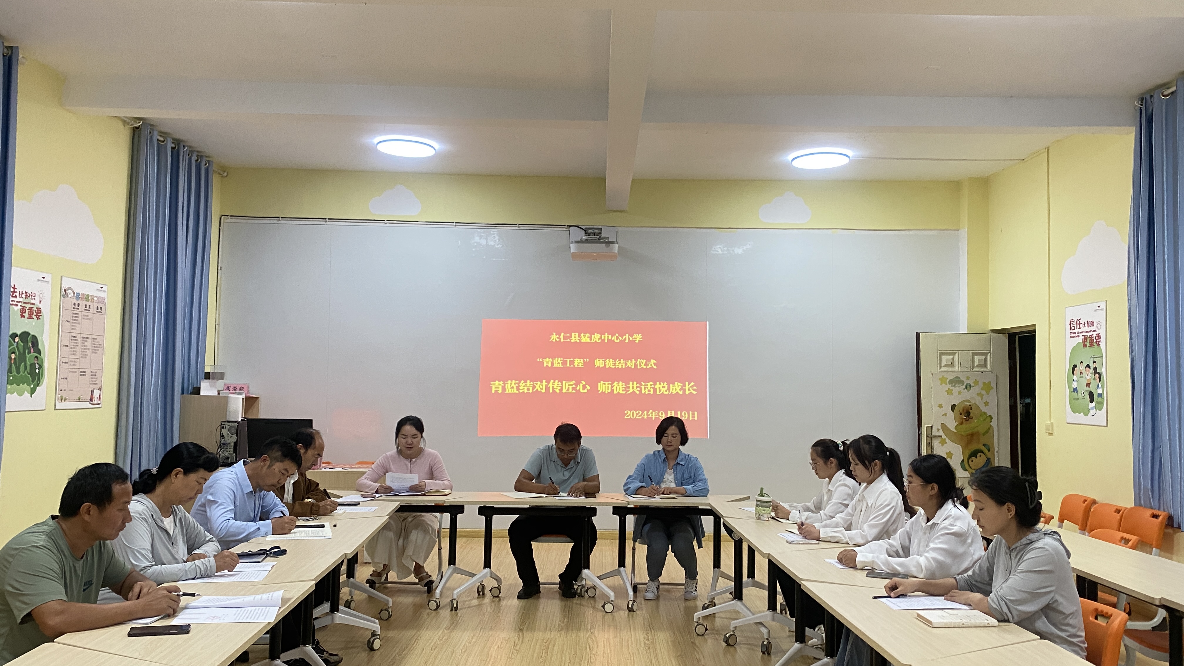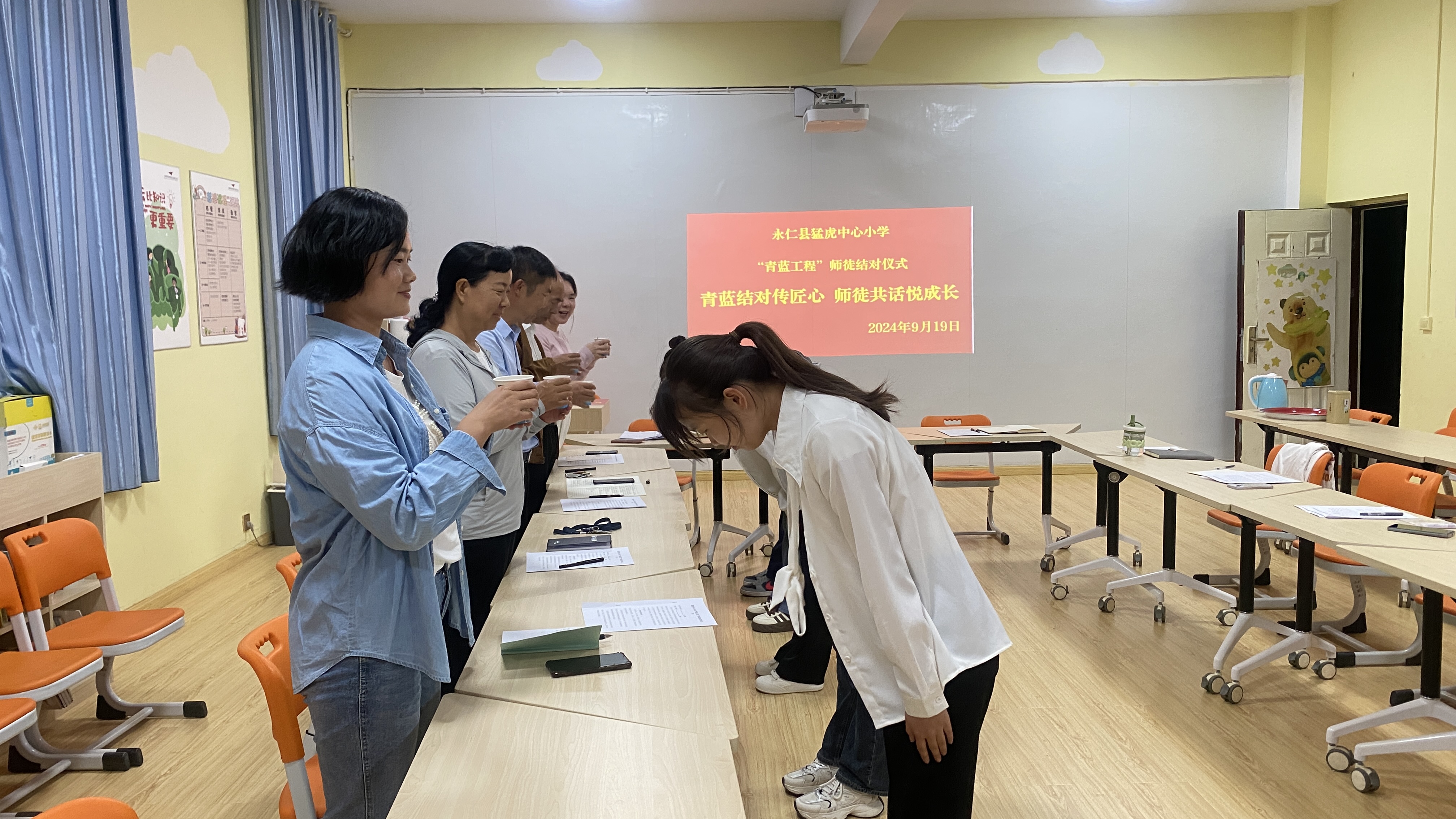 为进一步发挥猛虎小学优质教育资源的引领示范和辐射带动作用,切实把牢以优扶弱、优质均衡、共同发展的工作方向,通过建立“青蓝工程”工作机制,帮扶猛虎小学青年教师的成长,根据学校统一安排,猛虎中心小学于2024年9月19日晚,在梦想教室开展“青蓝工程”师徒结对仪式,进行教育教学研讨、交流活动。