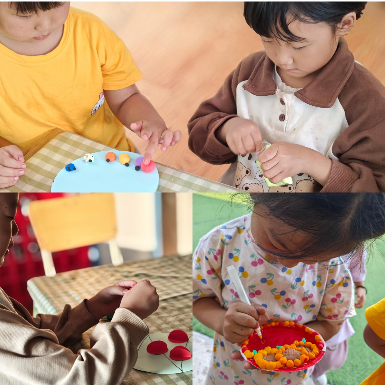 在艺术手工活动中,孩子们用五彩斑斓的橡皮泥,发挥无限创意,制作出一件件以“童心向党”为主题的手工作品。这些作品不仅展现了孩子们对党的热爱与敬仰,也锻炼了他们的动手能力和想象力。