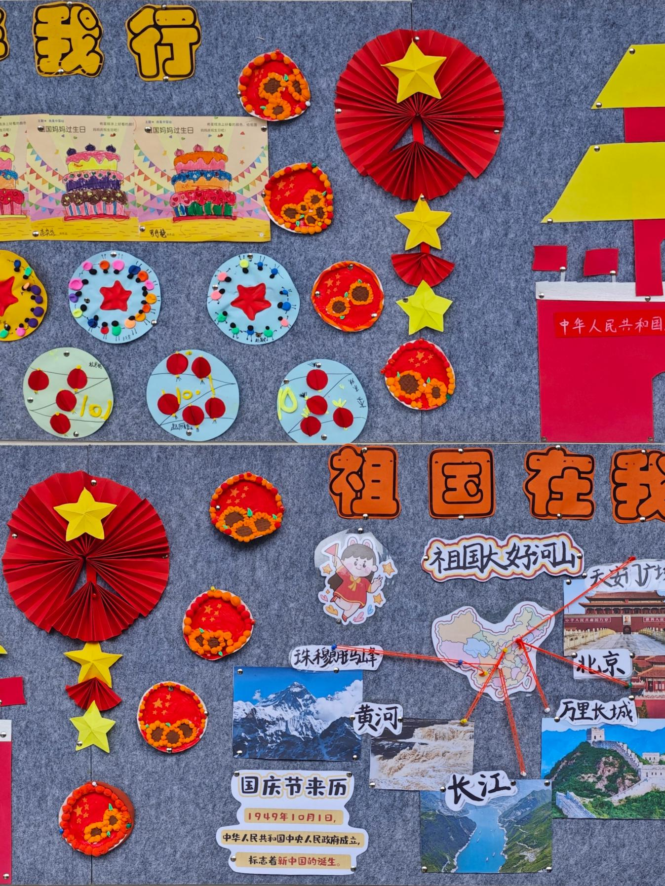 四、国庆主题墙展示:手工作品与祖国地图交相辉映