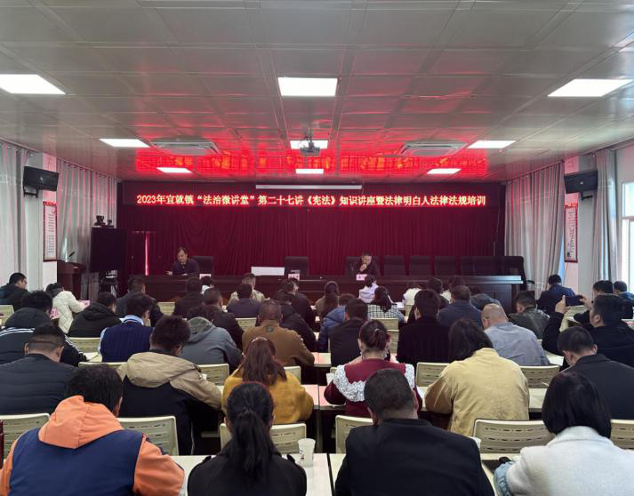为深入学习贯彻习近平法治思想,弘扬宪法精神,维护宪法权威,进一步强化国家公职人员宪法意识,营造学习宪法、宣传宪法、遵守宪法、维护宪法的良好氛围,12月4日上午,宜就镇开展“12.4”宪法宣誓仪式暨宪法宣传周启动仪式,并通过宜就镇“法治微讲堂”举行了宪法宣传周法律宣传讲座。镇党政班子成员、村四职、驻村第一书记、部分县镇两级人大代表参加活动。