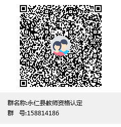 (四)参加认定人员请主动加入永仁县教师资格认定QQ群,(群号:158814186,二维码:)有关事项在群里通知。