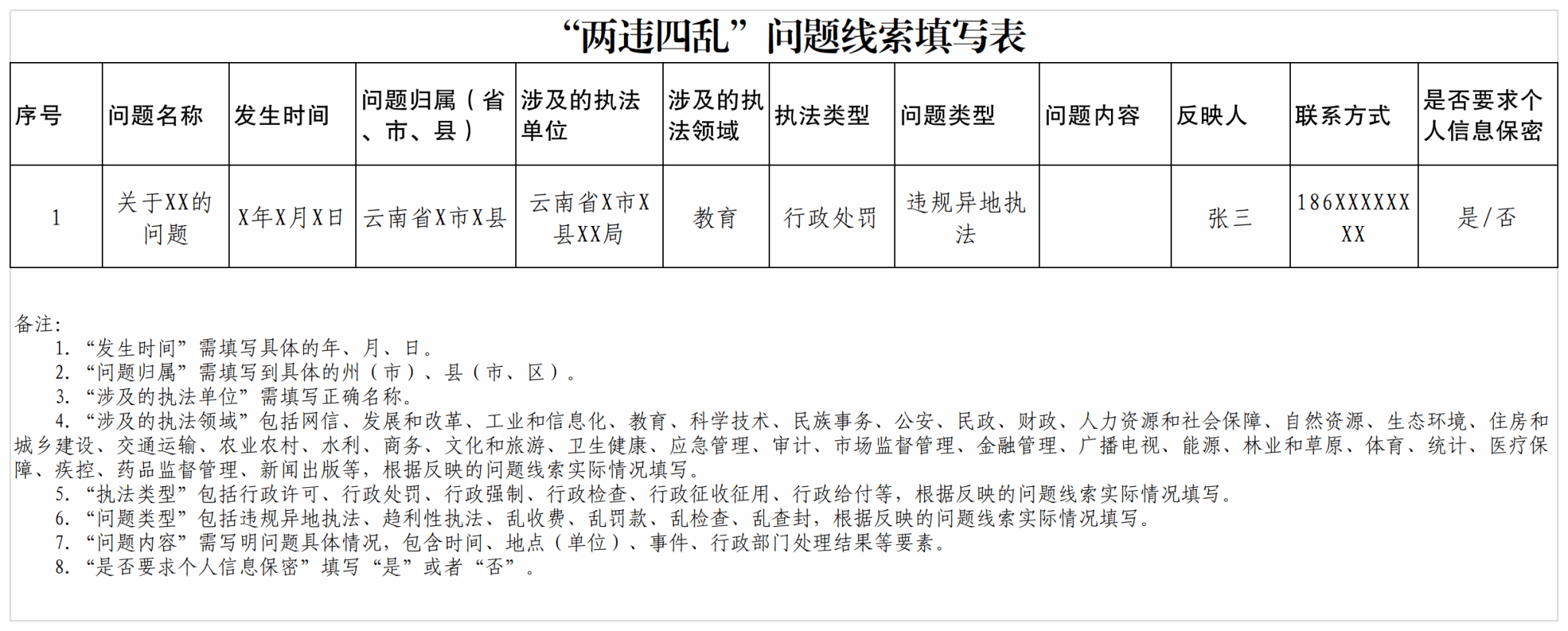 附件:“两违四乱”问题线索填写表