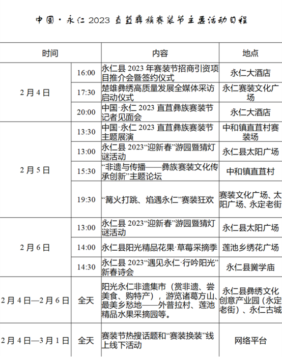 附:中国·永仁2023直苴彝族赛装节系列活动日程