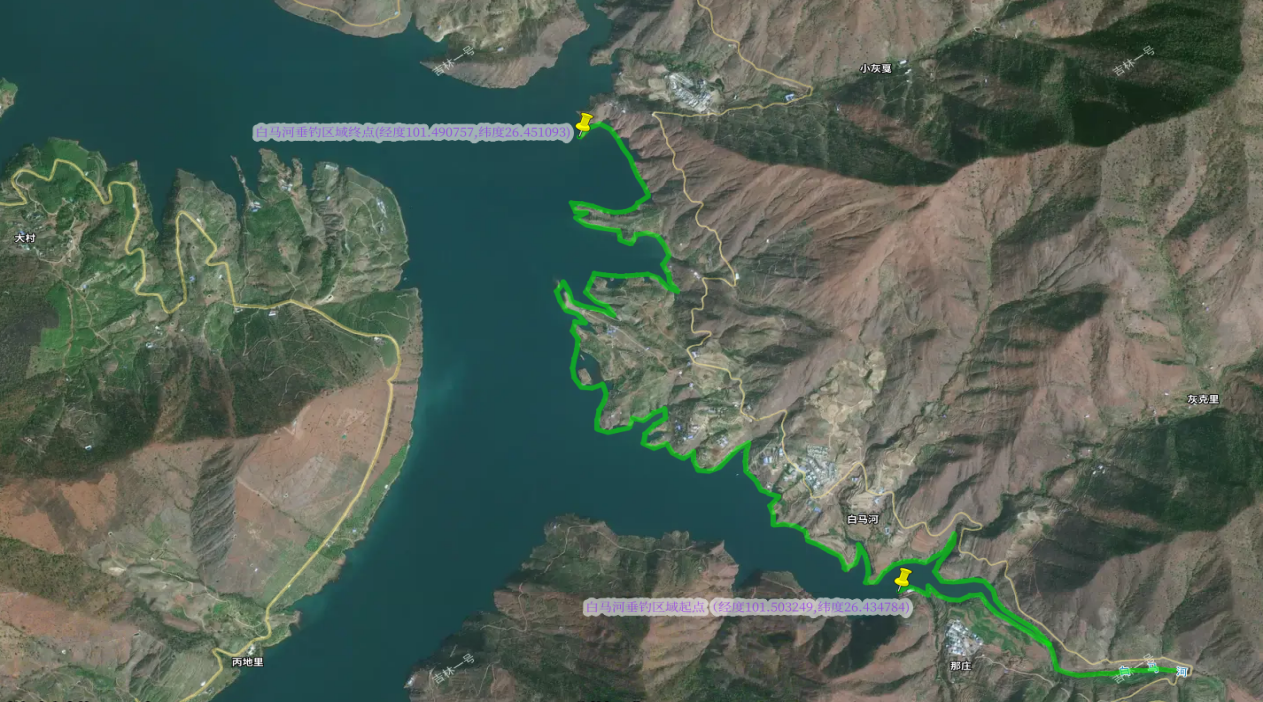 1.永兴乡白马河村委会灰打麻(经度101.490757,纬度26.451093)至白马河村(经度101.503249,纬度26.434784)。