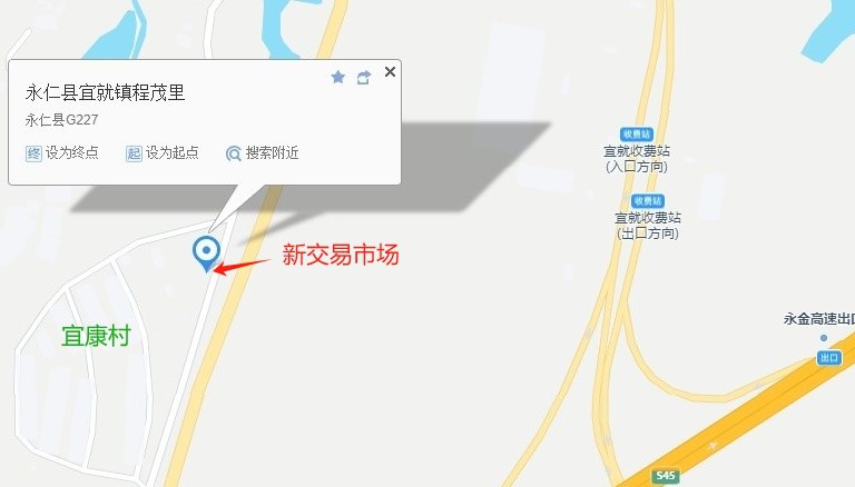 为进一步巩固提升宜就镇集镇卫生环境、规范市场秩序,全面改善集镇牲畜交易市场基础设施和经营环境,为群众和经营户打造一个整洁、规范的交易环境,经镇人民政府研究决定将集镇牲畜交易点搬迁至宜就镇特色农产品展示区(宜康村活动室下方南永公路旁)。