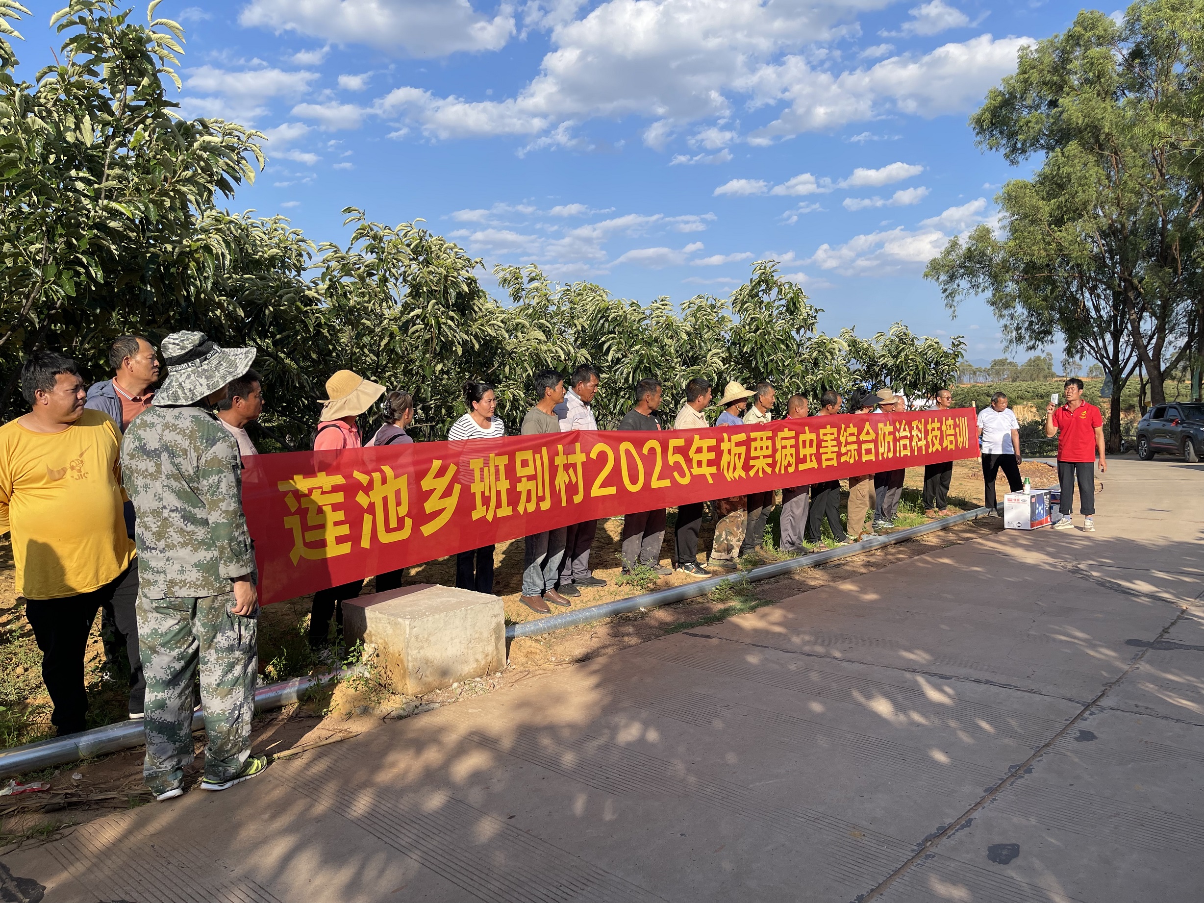 6月5日,莲池乡联合永仁县林业和草原局、县科学技术协会、县供销社以及永仁县阳光果香农特产品专业营销合作社,组织专业技术人员深入班别村的田间地头,开展了一场板栗病虫害综合防治及保果增产技术培训活动。此次培训聚焦农户实际需求,采用“理论+实操+惠农宣导”的多元模式,为莲池乡板栗产业的高质量发展提供了有力的科技支撑。