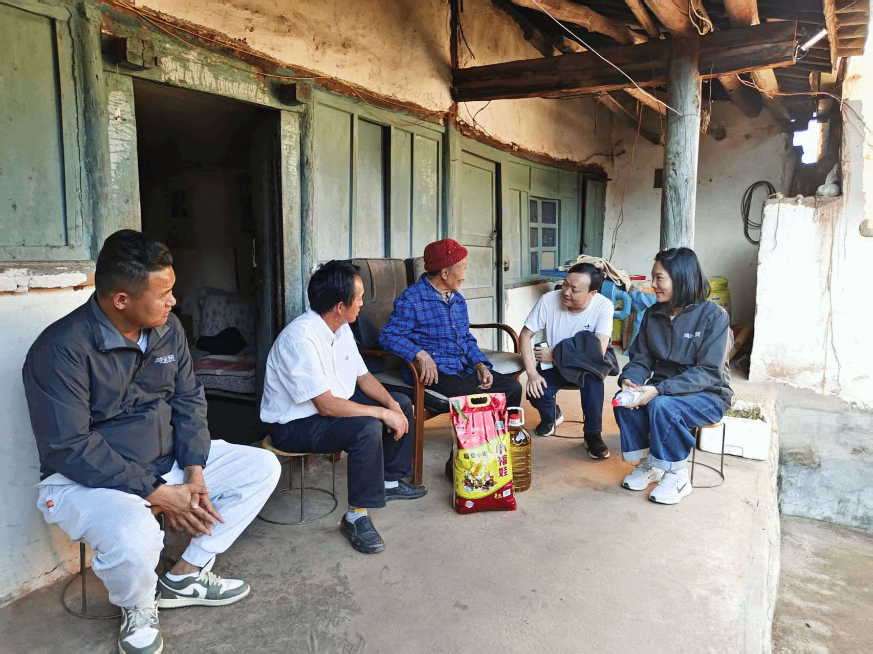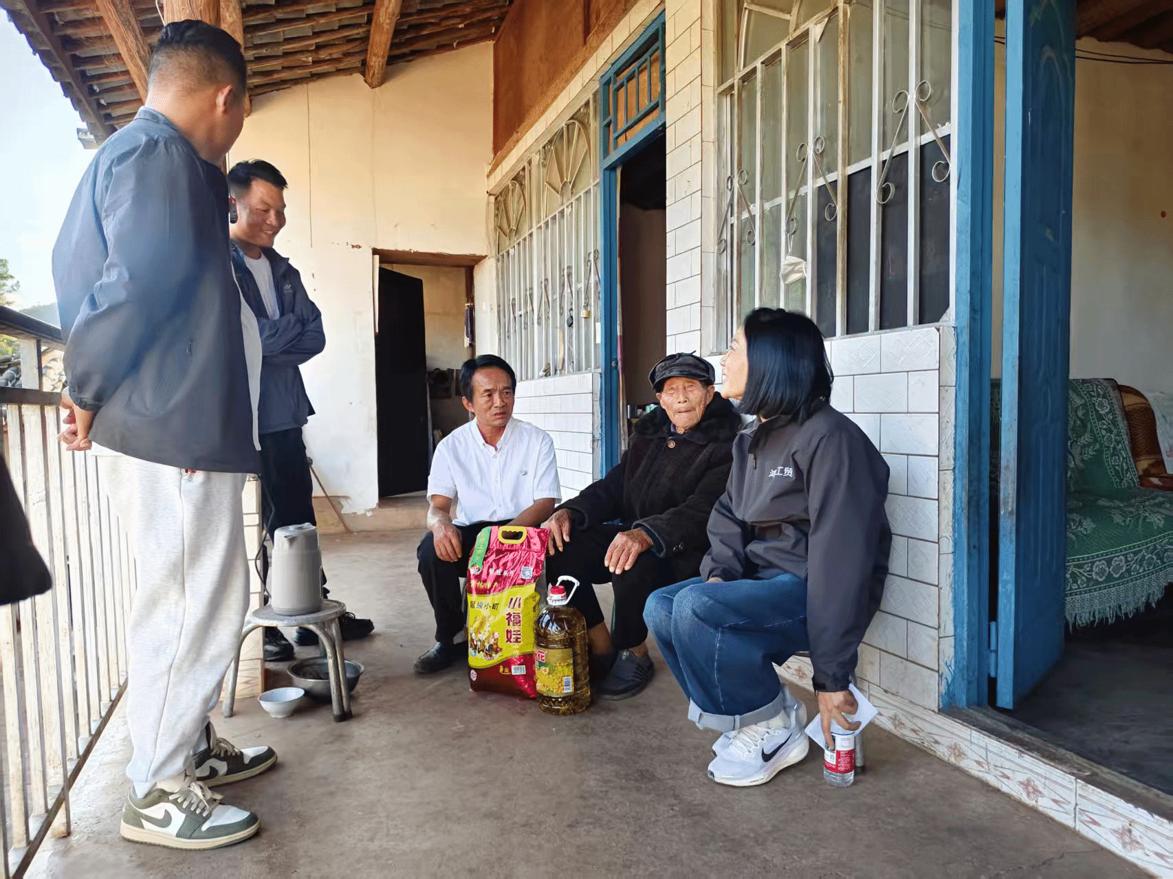 11月12日下午,慰问团队抵达潘古里,在当地驻村干部和村干部的陪同下开展走访慰问。每到一户,工作人员都与群众促膝长谈,耐心倾听他们的生活近况,细致询问身体状况、家庭收入及实际困难。“最近天气冷,要多注意添衣保暖,有什么需要帮忙的尽管跟我们说。”在困难群众家中,公司负责人一边为其送上米、油等生活必需品,一边叮嘱他们保重身体。当得知部分家庭因缺乏劳动力导致生活不便时,慰问团队现场记录下具体需求,表示将持续关注并尽力提供帮扶。