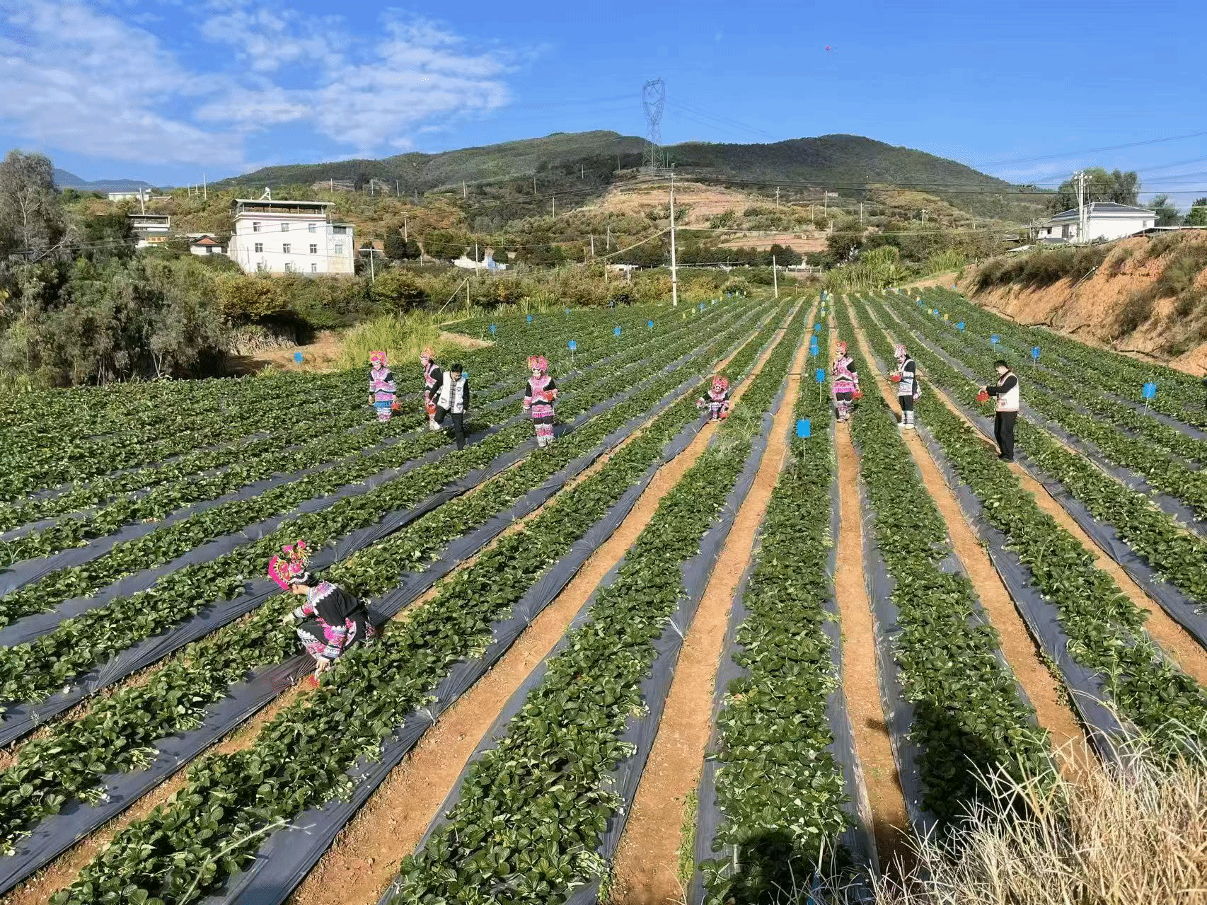 清晨的永仁县宜就镇草莓基地,翠绿田垄间黄蓝板错落成景,身着统一红马甲的分拣员忙碌分拣,贴有专属标识的冷链车辆整装待发,收购商在规范交易中心有序洽谈——一幅“种得优、销得畅、价更高”的全链条兴旺画卷,在宜就镇徐徐铺展。今年来,宜就镇锚定草莓产业高质量发展目标,创新实施“六个一批”提质增效行动,从种植源头到精深加工精准发力,构建起标准化、规范化、品牌化的现代化产业体系,让小小草莓成为激活乡村振兴的“甜蜜引擎”,托起农户增收致富的新希望。