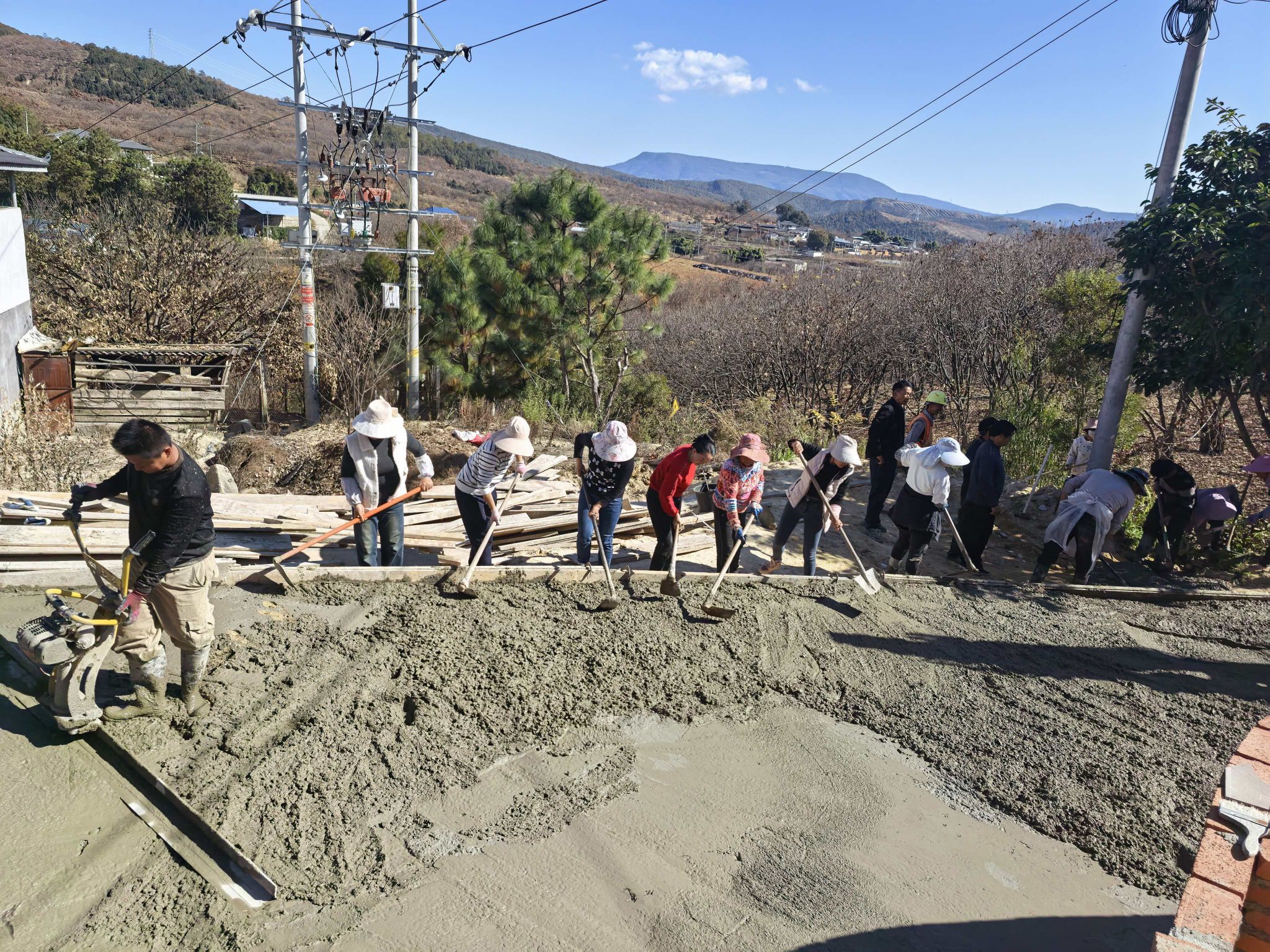“一二三,加把劲!”晨雾还没被初升的太阳拨开,维的乡么吉利村火头田组——这片高海拔山区的山坳里已响起此起彼伏的号子声。机耕道旁水泥搅拌发出沙沙声,村里男女老少,拿铁铲、挑泥沙,加宽路基、平整路面,好不热闹。
