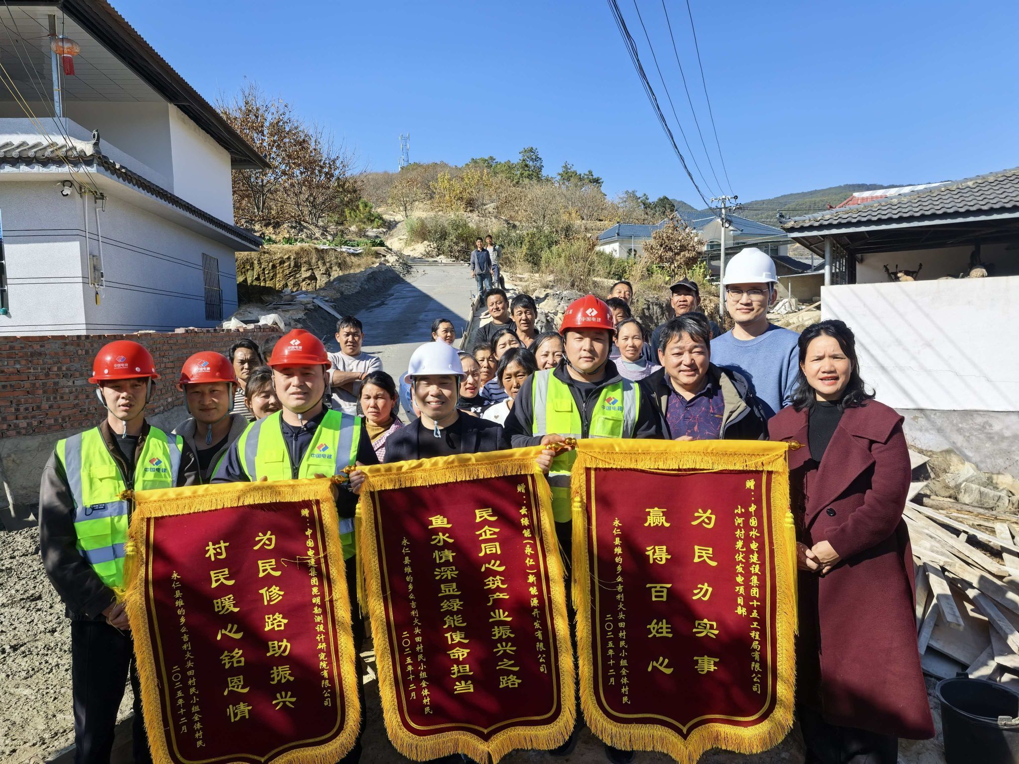 企业慷慨出料,免费提供设计规划和技术指导服务,群众踊跃投工投劳,一条便民利民的机耕道就此破土动工、稳步修建。为表达感激之情,村民们自发绣制三面锦旗,将 “党企民鱼水深情” 的佳话,深深镌刻在了云岭深处。