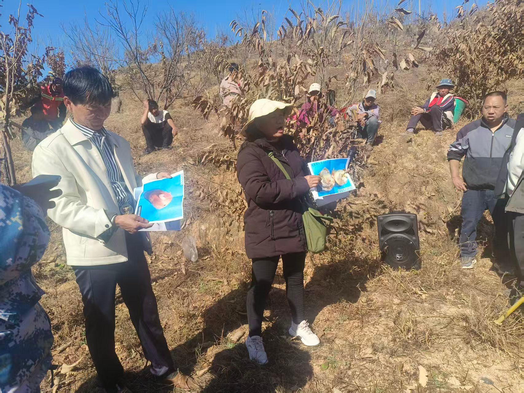 针对当地多发的栗实象甲等病虫害,培训通过图文展板、实物对照等形式,系统讲解其发生规律与危害特点,重点明确防治关键期、适用药剂及科学施药方法,同步推广冬季清园、病枝清理等物理措施,着力构建“物理+化学”协同防控体系。现场互动踊跃,农户争相提问,技术人员即时解答,学习氛围浓厚。参训种植户纷纷表示,此次培训内容实在、方法具体,既厘清了以往误区,又掌握了实操技能,对提升冬管质量、促进来年丰产很有帮助。