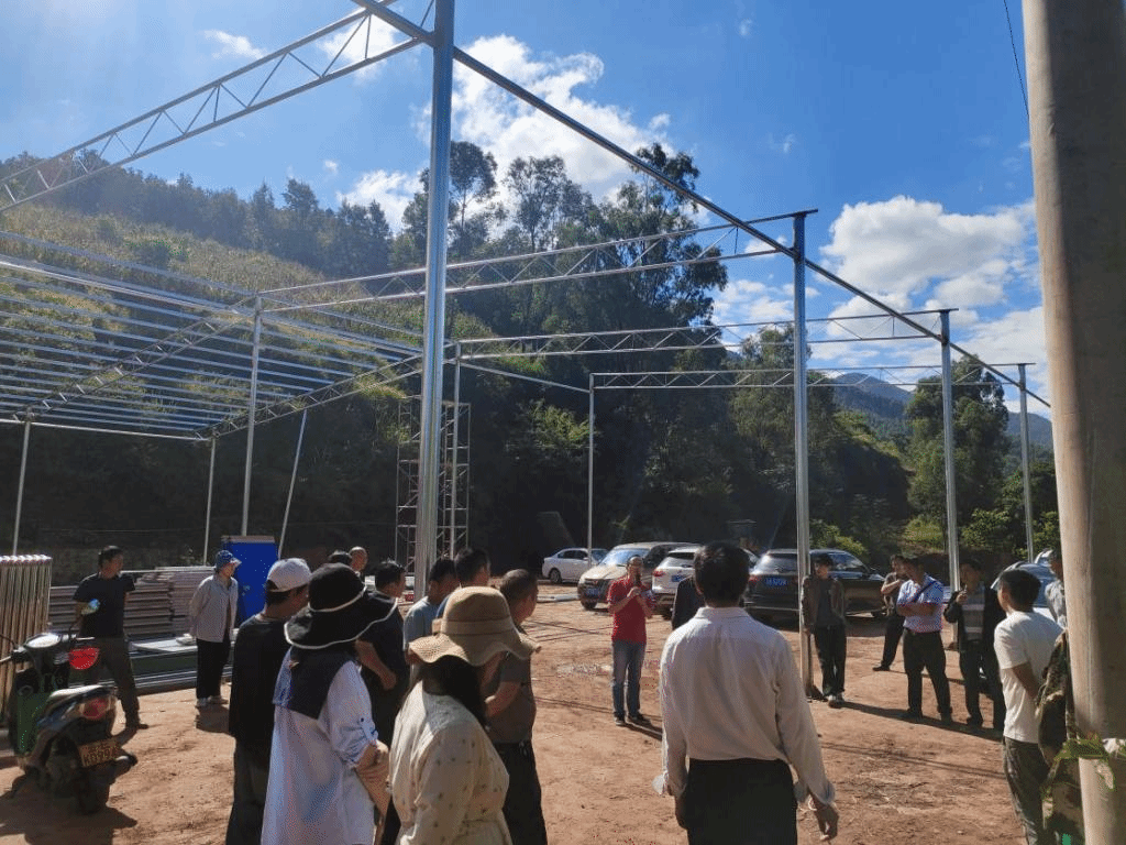 参会人员来到中和镇贡菜种植加工厂进行参观,云南华恒药业有限公司相关人员介绍了在建工厂规模和建成后贡菜加工规模。