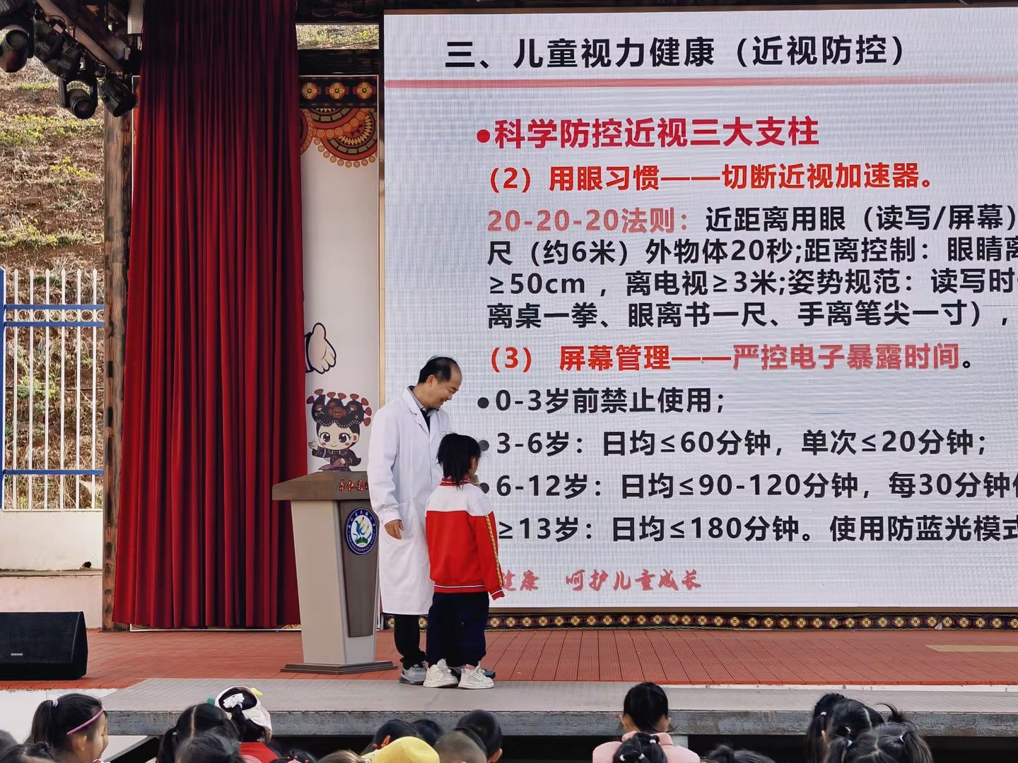 讲座伊始,丁副院长通报2025年民族小学学生体检情况。本次体检应检1449人,实检1432人,体检参与率98.83%。体检数据显示,部分指标高于全县小学生平均水平,为学生健康敲响警钟。