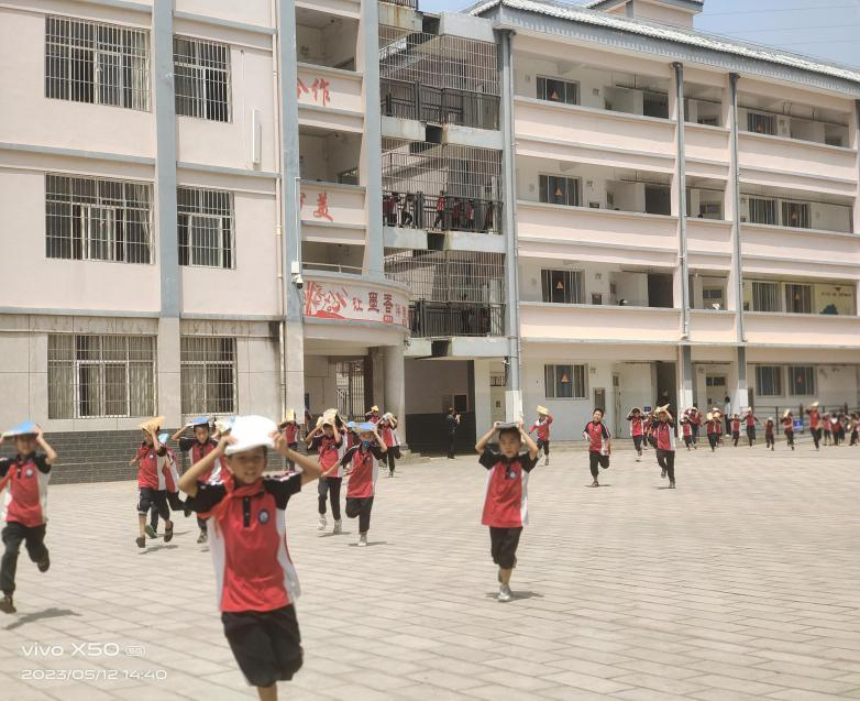 下午14:30,随着地震警报声响起,上课教师立即停止授课,转而成为教室内演练负责人,并立即告知学生:地震来了,请大家不要慌张,迅速抱头,躲在各自的课桌旁,尽量蜷缩身体,降低身体重心,并用书包或者书本护住头部。30秒后,信号员发出“应急疏散警报”信号,此时,老师告知学生:地震主震波已过,请大家快速地撤离教室。同学们在老师的带领下快速、有序地撤离到操场上。