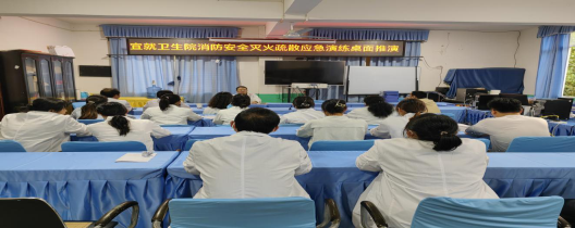 为了增强职工火险发生时的自我保护能力,提高防火安全意识,提高职工应对人员密集场所火灾事故的迅速反应能力,教导职工基本的防火灭火方法,宜就镇中心卫生院将组织全体职工进行了消防灭火疏散应急演练,掌握应对危险发生时采取的防护措施和方法,最大限度地降低危险带来的损失,有序施救、及时转运、安抚病人及家属,从而提高职工紧急避险、自救自护的能力和尽可能降低医院财产损失。于2023年5月9日下午 18:30对全体医务人员进行消防演习。