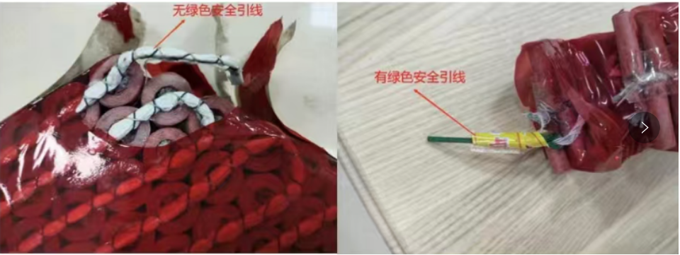 2.烟花爆竹分为个人燃放类和专业燃放类,选择标注有“个人燃放”字样的产品。应特别注意是否安装绿色安全引线,点火部位是否有明显标识。