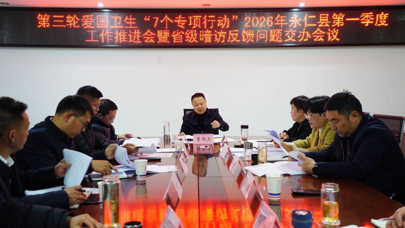 1月20日,永仁县召开第三轮爱国卫生“7个专项行动”第一季度工作推进会,贯彻落实中央、省、州关于爱国卫生工作的部署要求,扎实推进专项行动深入开展。县委副书记、县人民政府县长曾灼三出席并讲话。
